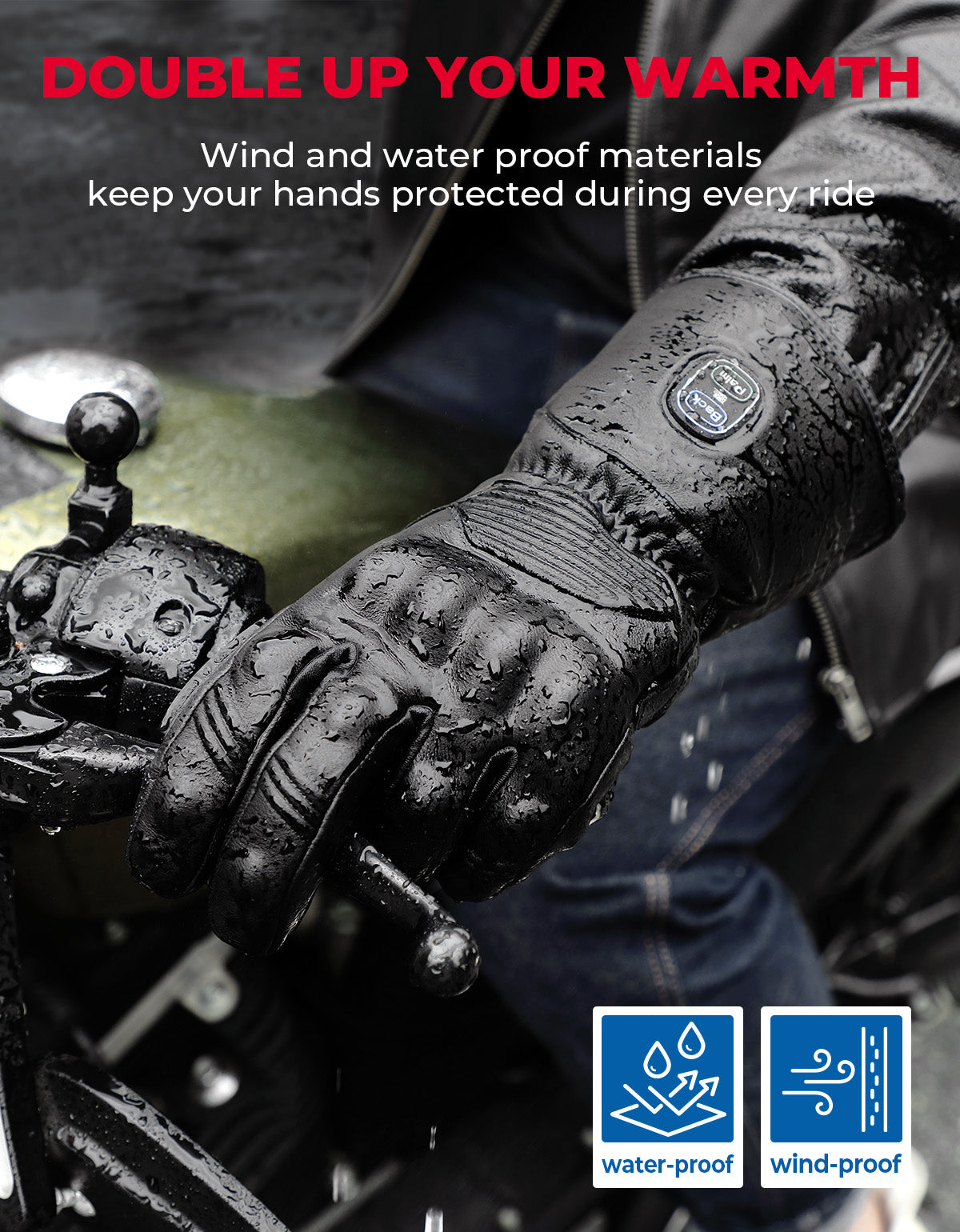 Heated Motorcycle Gloves Sheepskin 7.4V Battery Waterproof Touchscreen