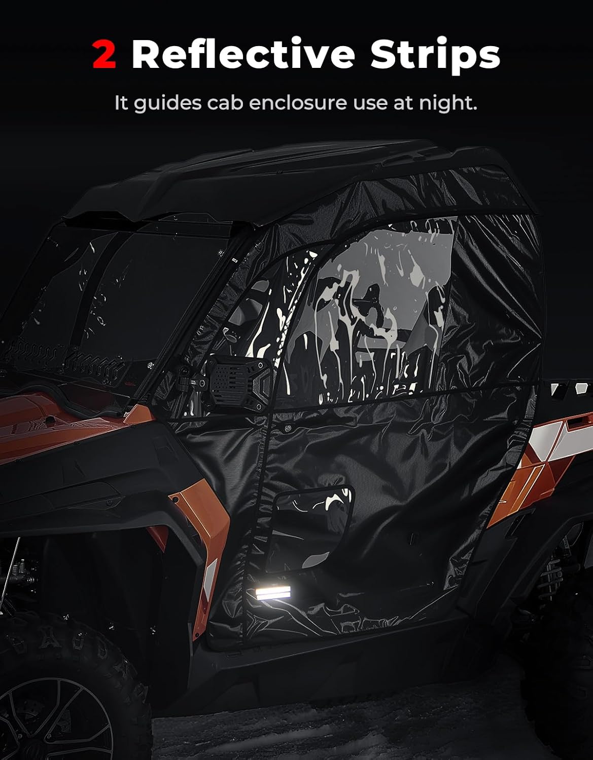 Level up your CFmoto ZForce with Kemimoto top-notch soft cab enclosure. It's got a tough nylon zipper and waterproof PVC fabric, so it's ready for whatever the weather throws at you. Even in the chill, thanks to the scratch-proof design, you'll have a crystal clear view. The quick-access windows and those reflective strips make it a breeze to hop in and out, day or night. And the best part? No tools are needed for setup—just slip it on and you're good to hit the road! Plus, it fits a bunch of CFmoto ZForce models, and it's a great fit for a variety of rides. Don't wait—grab your CFmoto ZForce soft cab enclosure now for a mix of convenience and toughness that's just right for you.