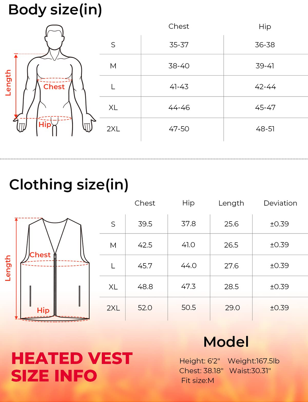 Experience the ultimate in warmth and comfort with our classic heated vest, designed to fit most men's body types perfectly. Powered by a safe and reliable 9600mAh battery, this vest offers up to 10 hours of warmth on a single charge. It warms up in just 5 seconds, keeping you cozy on the chilliest days. With 9 smart heating modes and 6 heating zones, you can effortlessly customize your comfort. Don’t miss out on the chance to stay warm and stylish this winter!