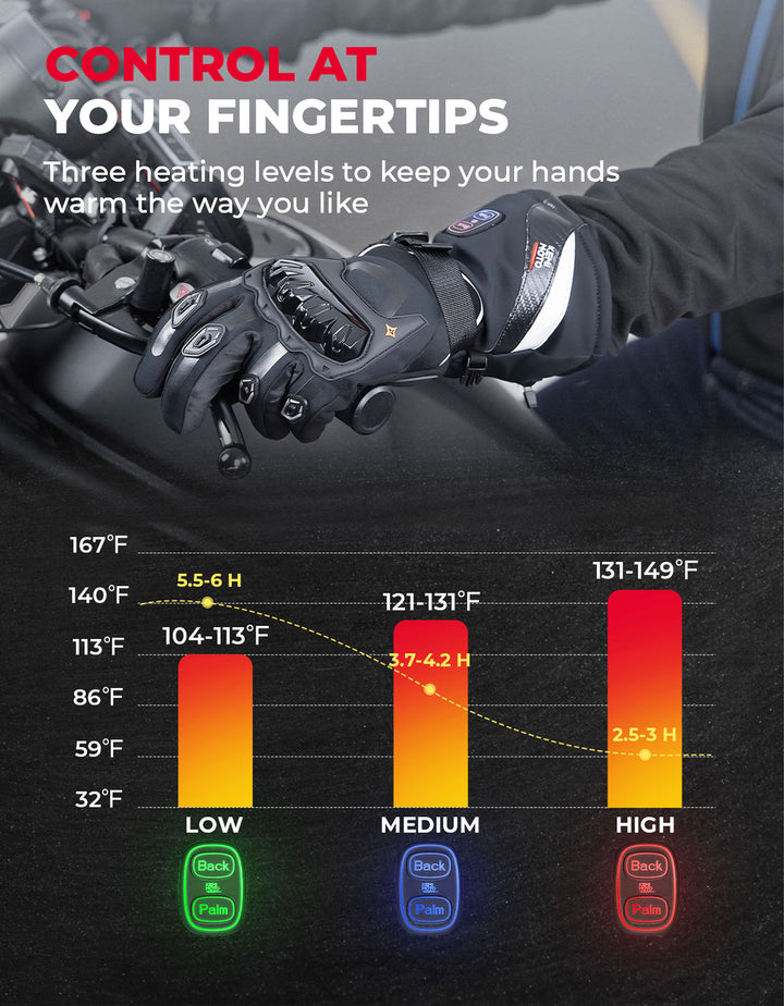 Heated Motorcycle Gloves, 3 Heating Modes with 2500mAH Battery
