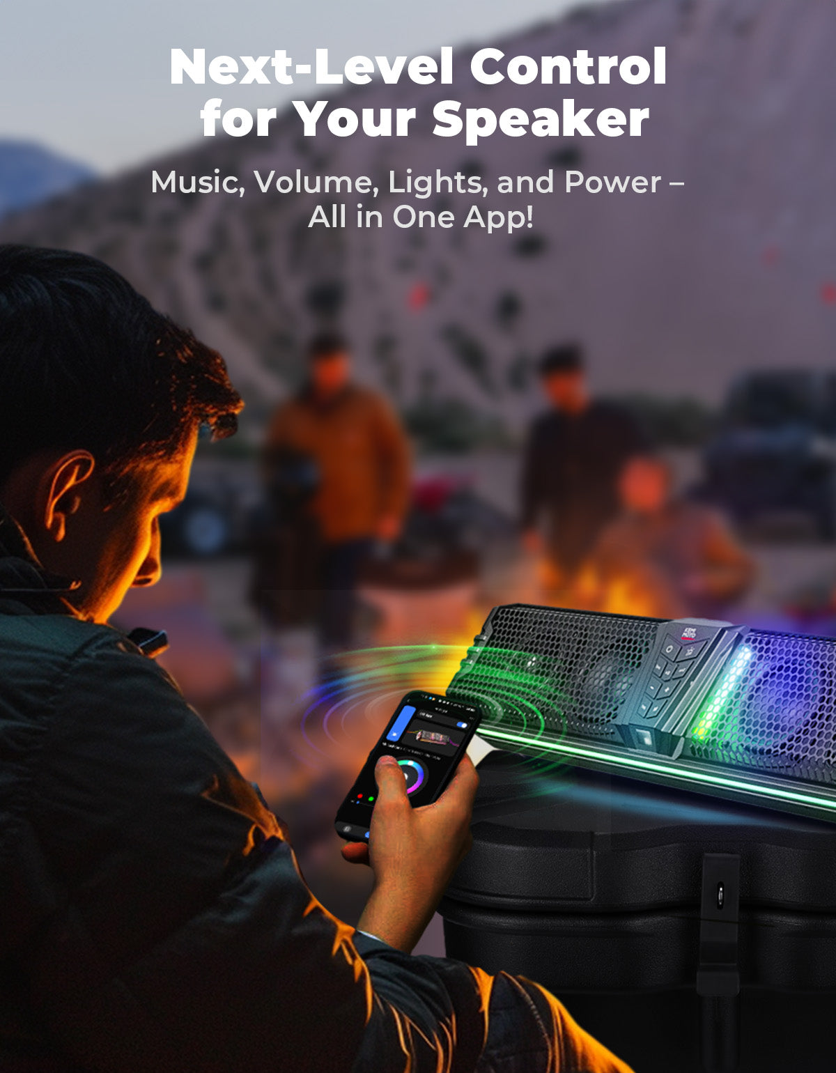 KEMIMOTO Midnight 60 26" 4-Speaker UTV Bluetooth Sound Bar w/RGB Lighting - Kemimoto