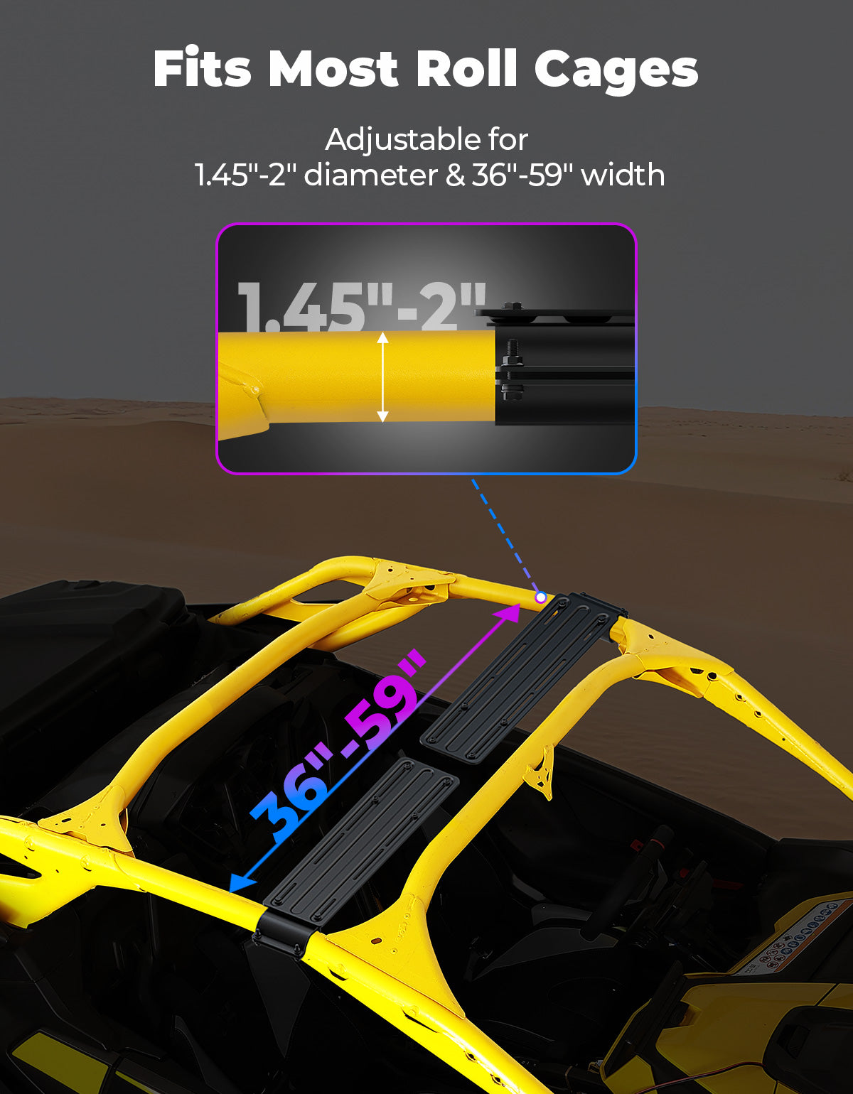 Midnight 90 Roof 34 Inch Soundbar For Can-Am Polaris UTV Bluetooth Speaker Fits 1.45–2" Roll Cages