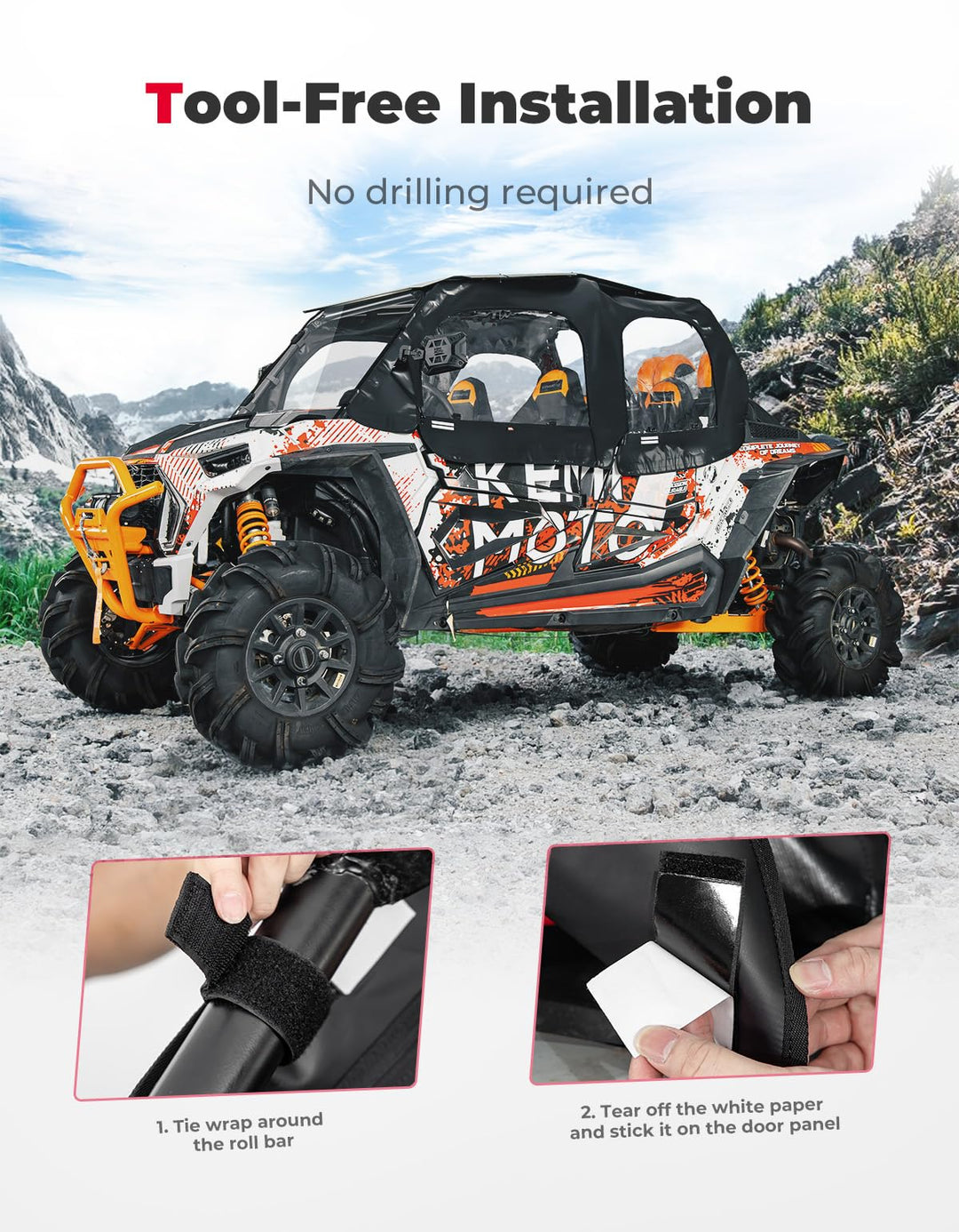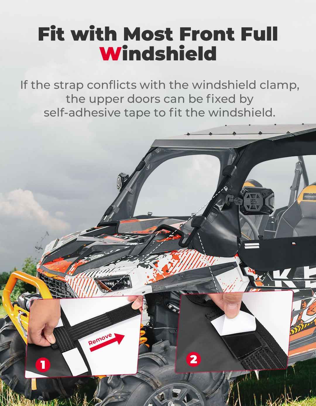 Soft Cab Enclosure Upper Doors, Waterproof Heavy-Duty Snaps Hold 4 Side Windows Fit 2014+ Polaris RZR XP - Kemimoto