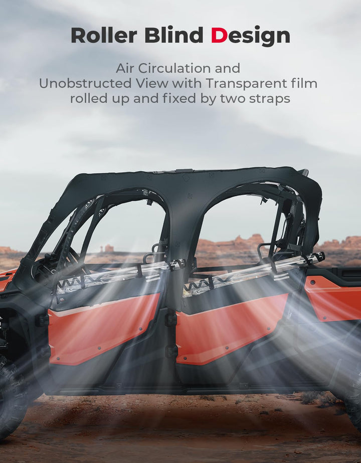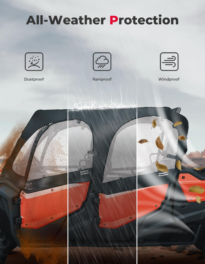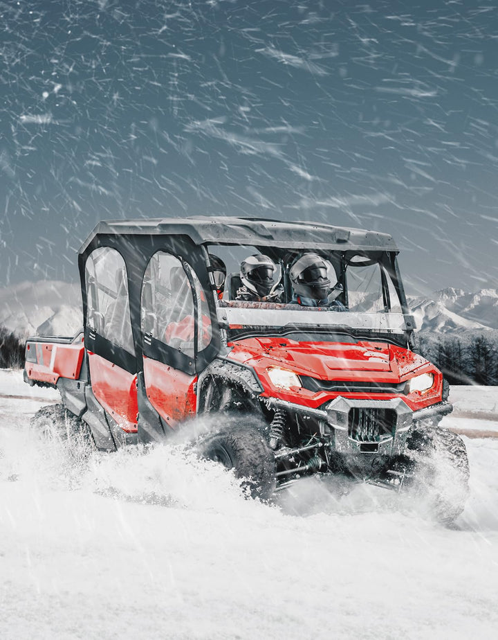 KEMIMOTO UTV cab enclosure provides complete coverage from harsh weather conditions such as rain, snow, wind, and extreme temperatures. In summer, the upper window prevents sunlight, debris and insects in, keeping the cab tidy and clean. In winter, it can prevent wind and snow, insulating cold air and ensuring the cab warm.