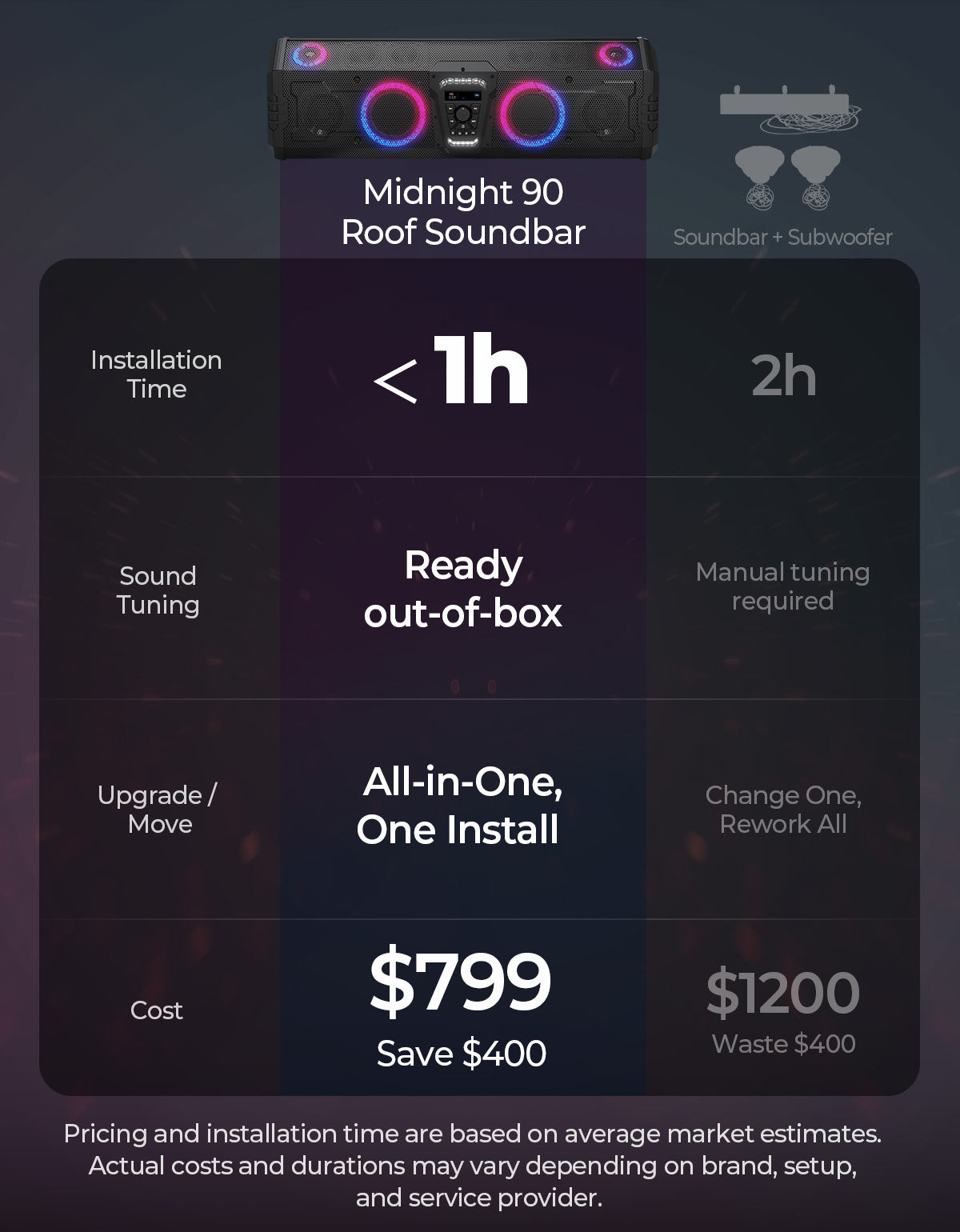 Midnight 90 Roof Soundbar For Can-am Polaris UTV Bluetooth 10 Speakers RGB Lights IP66 Waterproof Dustproof