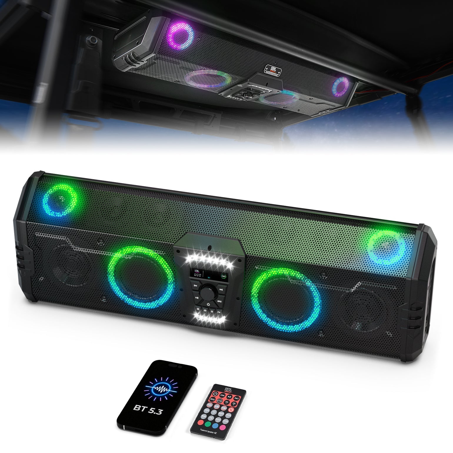 Midnight 90 Roof 34.25" Soundbar For Can-am Polaris UTV Bluetooth Speaker with Dual Subwoofers, IP66 Waterproof 10-Speaker System