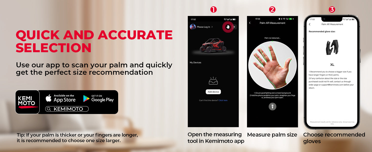 Not sure about your size? Scan your palm in the App and get the perfect fit instantly.